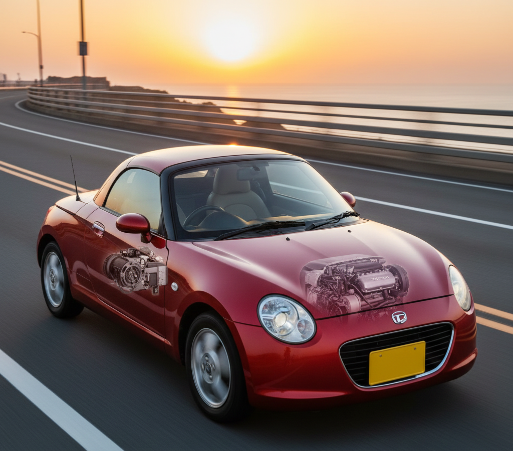 • L’Essenza della Kei Car: In Giappone, le kei car godono di vantaggi fiscali e normativi, ma devono rispettare rigide limitazioni di dimensioni (lunghezza massima 3.4 metri) e cilindrata (massimo 660 cc). La Copen si adattava perfettamente a questa nicchia.